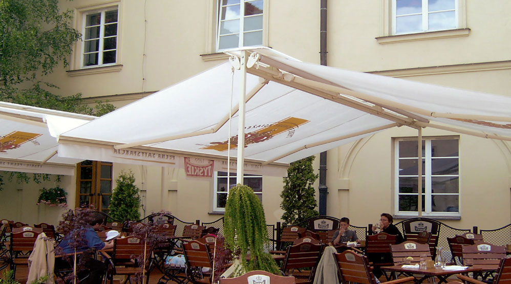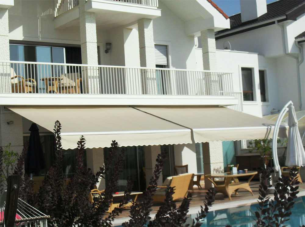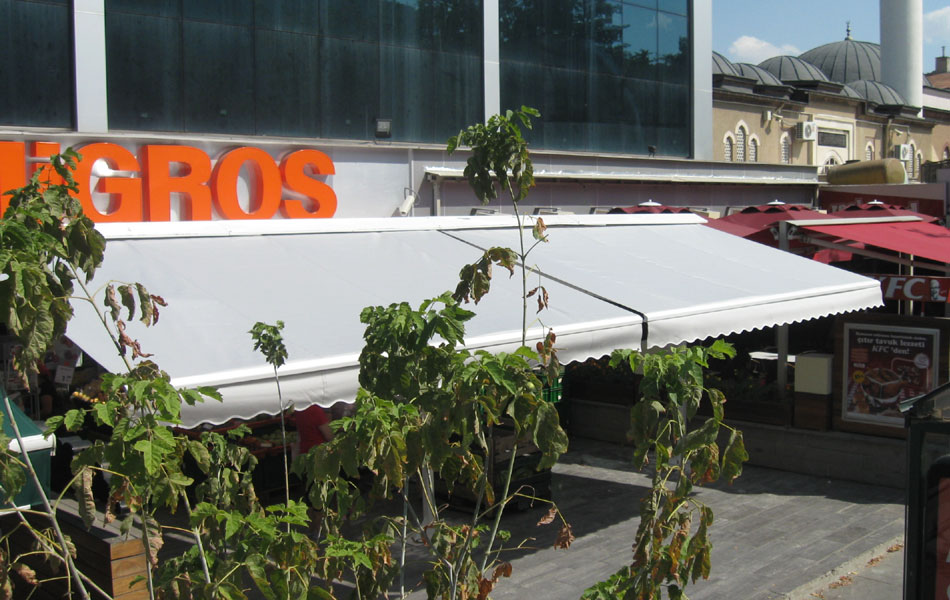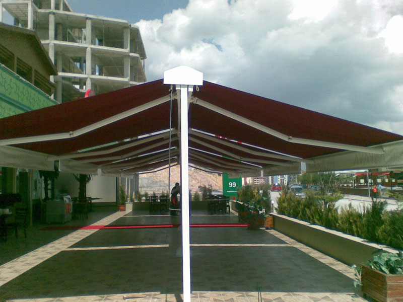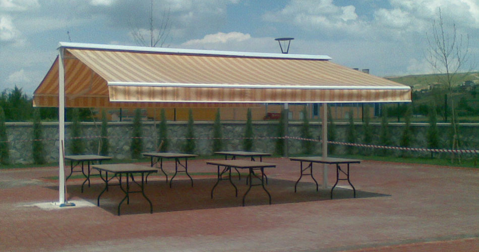 Çelik konstrüksiyonlu, saç kapamalı, alüminyum iskeletli, Ral 9010 elektrostatik toz boyalı ithal tente